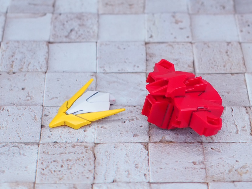 こちらはダクト内のブラック、枠のホワイト、装甲部のレッド、首元のイエローとかなり細かなパーツ分け。