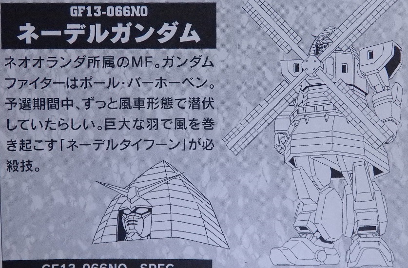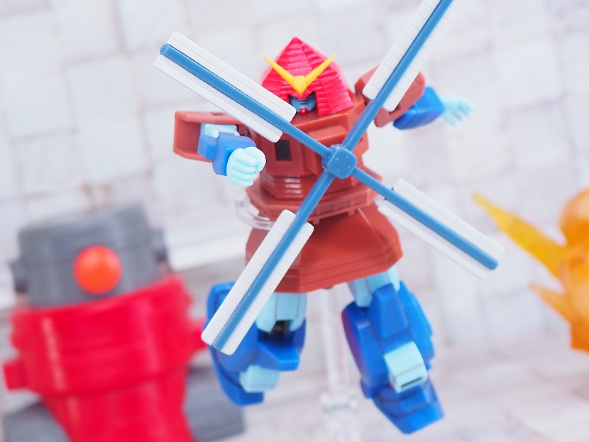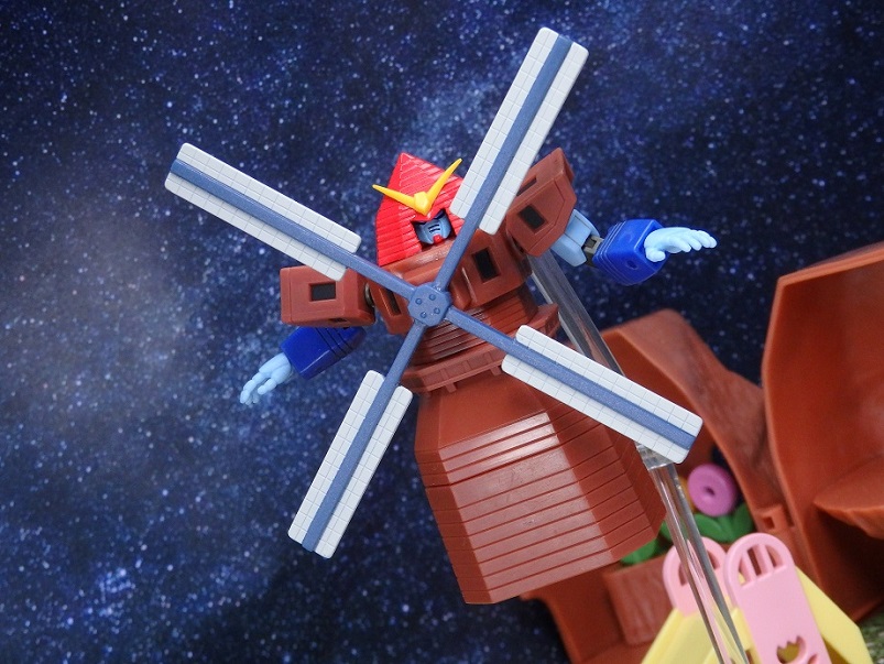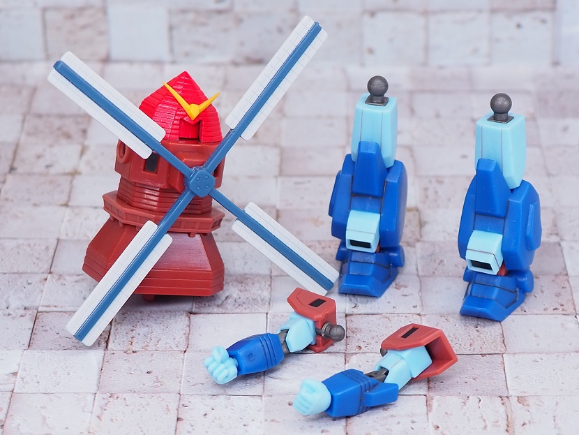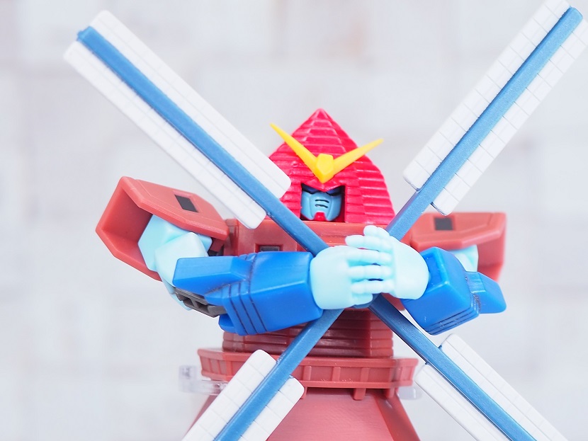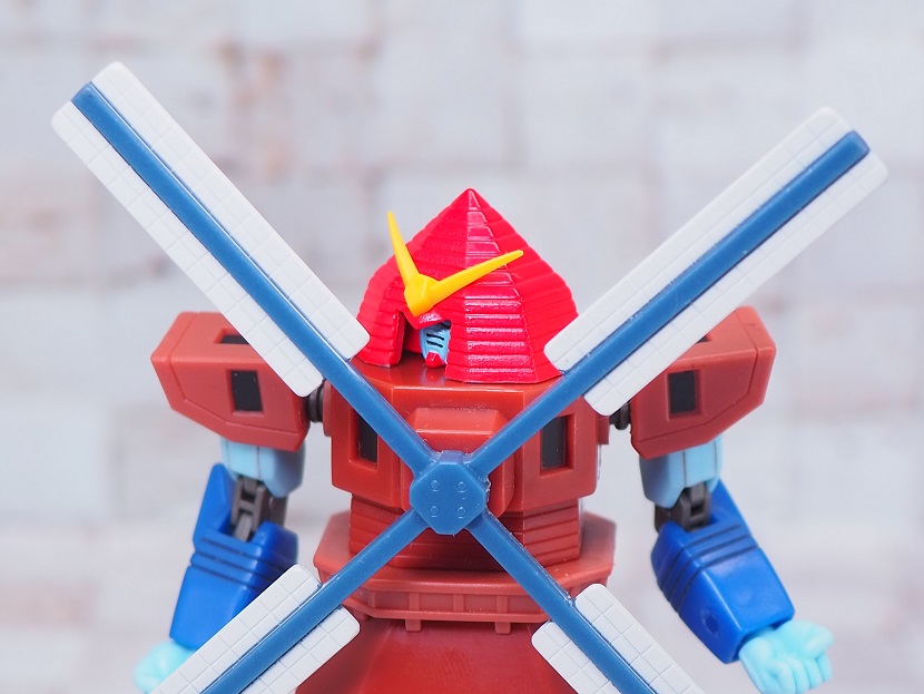 機体モチーフは見ての通りオランダの「風車小屋」で、そのままガンダムの手足が生えたような分かりやすいデザインになっております。