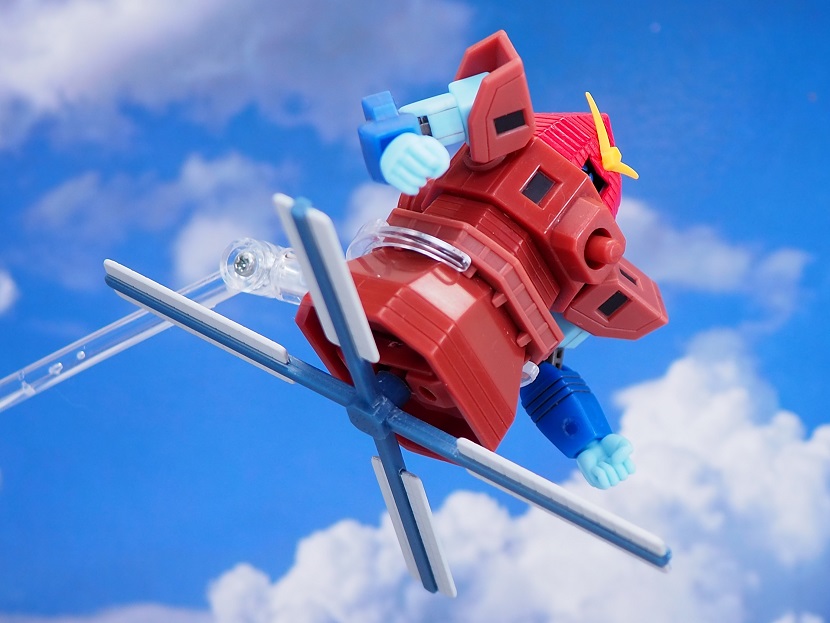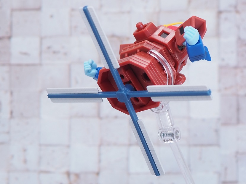 なんとこの状態でも背中のハンドルと連動してプロペラが回るギミックになっています。