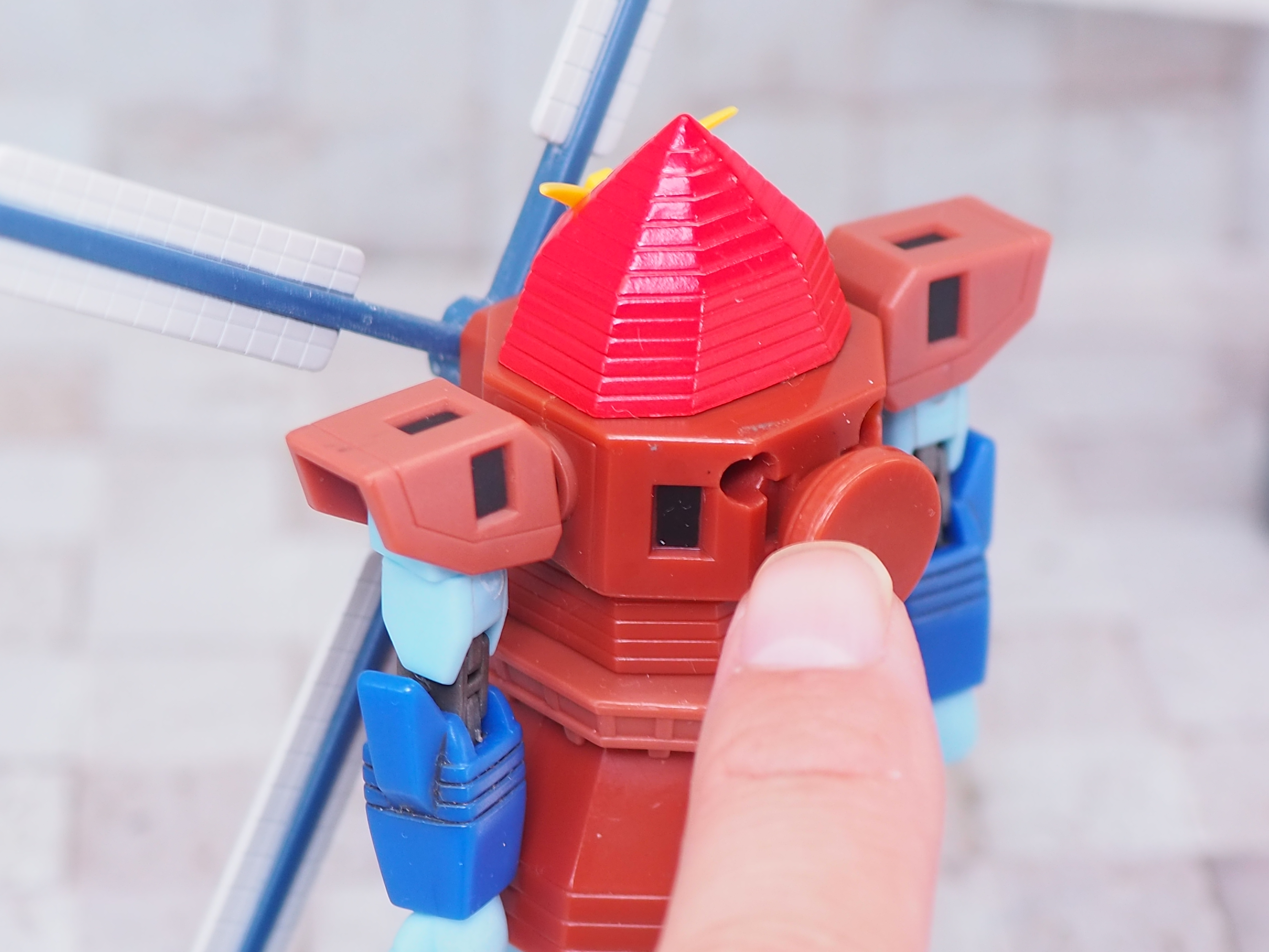 変形時に邪魔になるので一旦プロペラを外し、頭部を左方向に360度回転させると・・・・