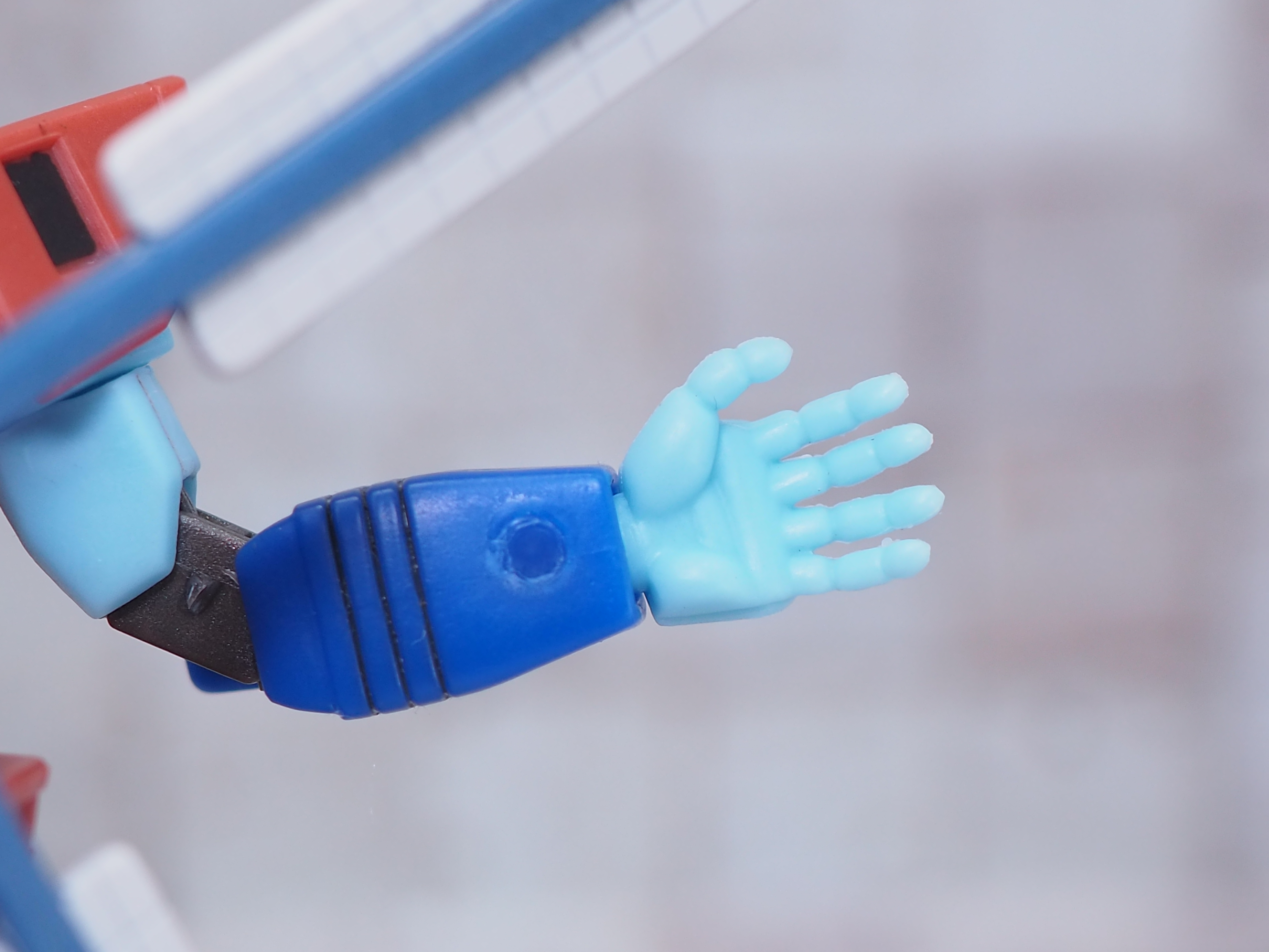 腕は肩がボールジョイントによる可動、二の腕にはロールが設けられています。