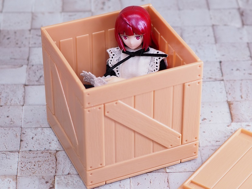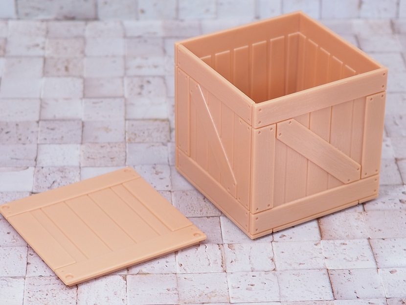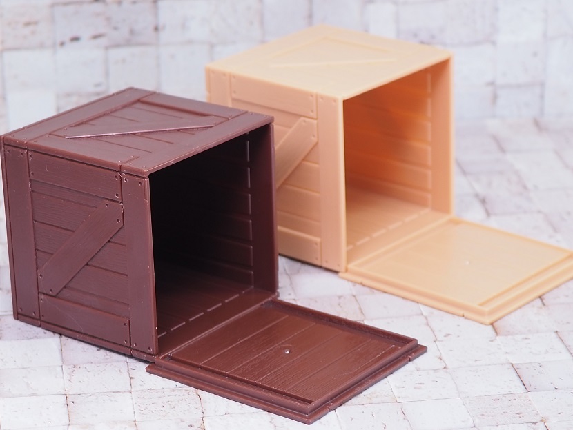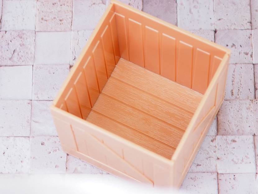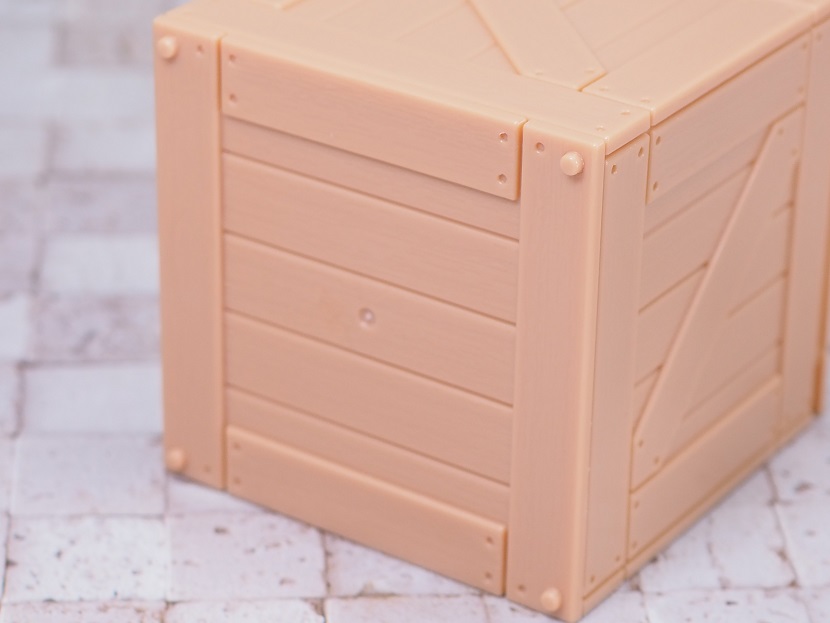 こちらはプラスチック(ポリスチレン)製の木箱ミニチュア。
