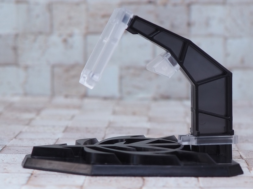 支柱に取り付けられた3つのクリアパーツでノイエ・ジールIIを支えるディスプレイ方法となります。
