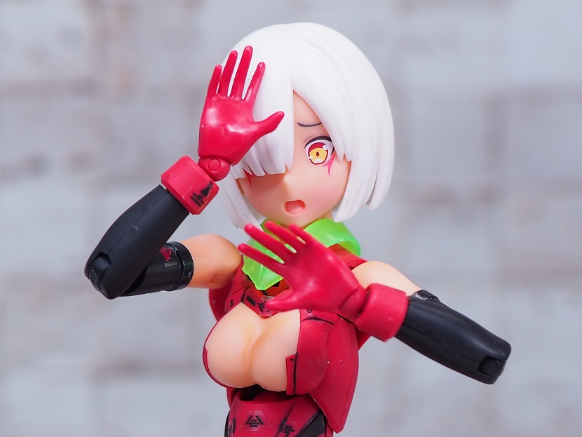 手首のジョイントは渋めなので初期のメガミみたいにぽろりと抜け落ちる心配はなさそうなんですが、若干肩のボールジョイントが弱めです。