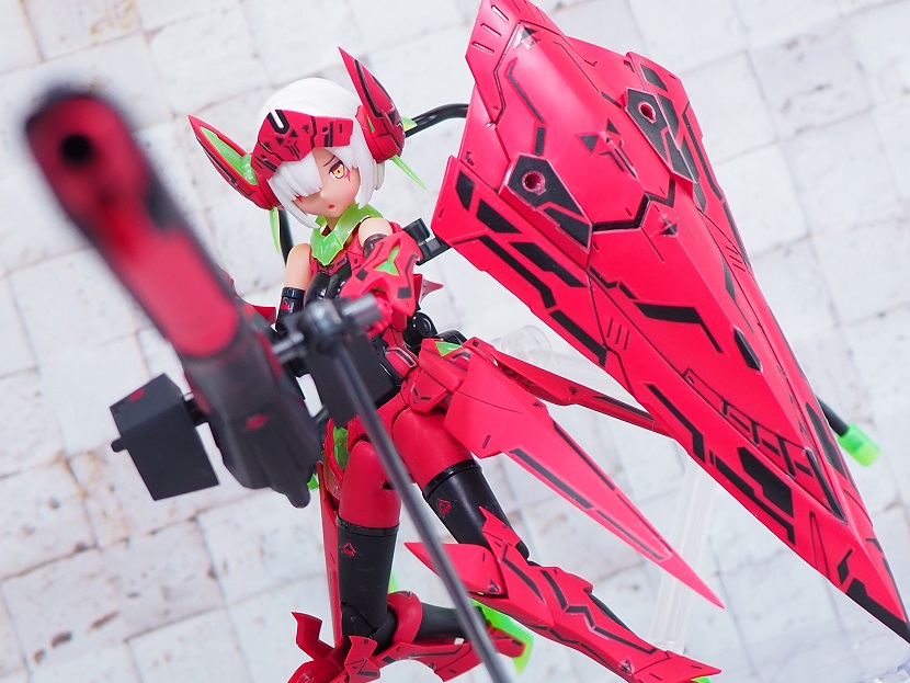 ランチャーとシールドを装備した状態だとかなり動かしづらくなるので、ポージングには時間がかかりますね。