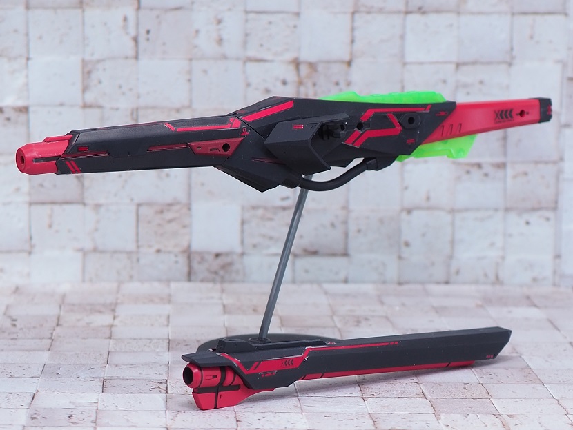 新規成型色と新規デカールで深紅と漆黒をイメージしたカラーリングで通常のランチャーよりも少し禍々しい配色となっております。