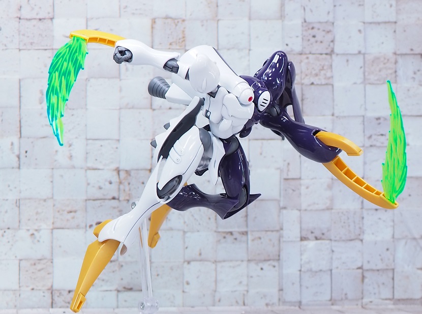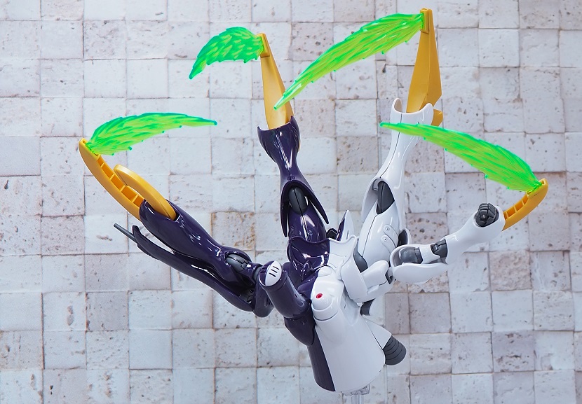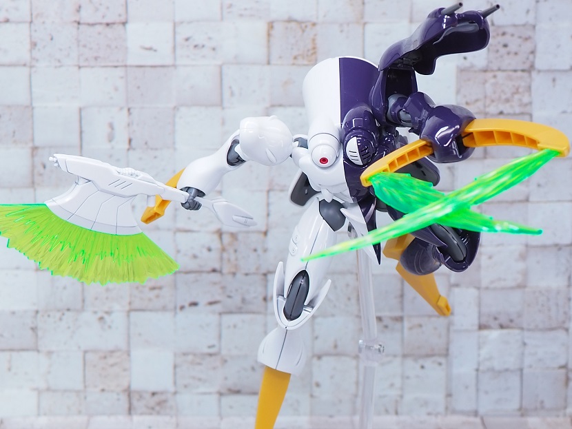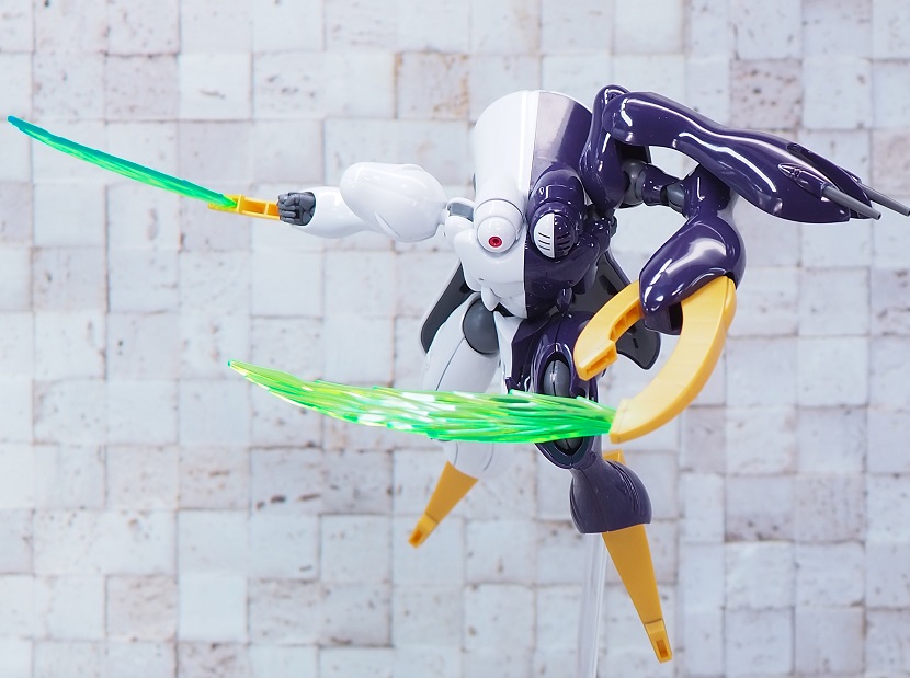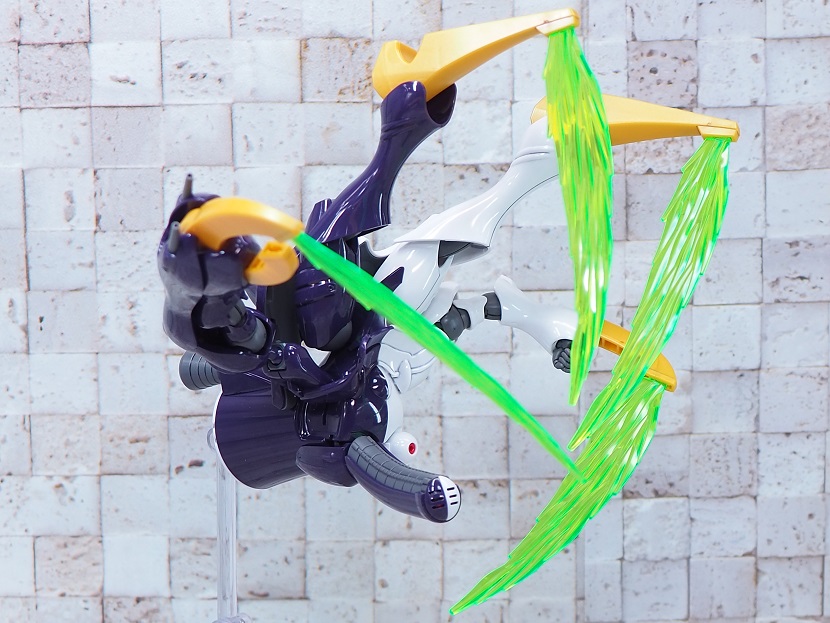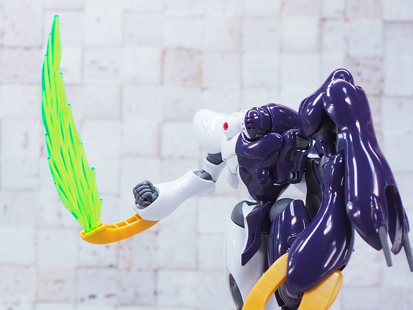 先端部と根本でビーム刃の厚みが違う為、クリアパーツの濃淡によりエフェクトの色合いが異なる表現になっています。