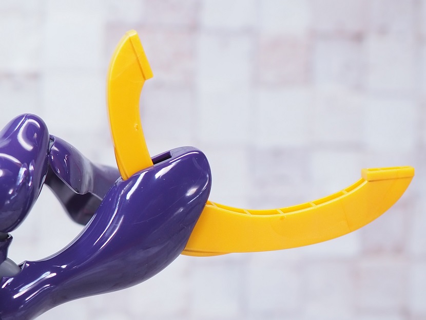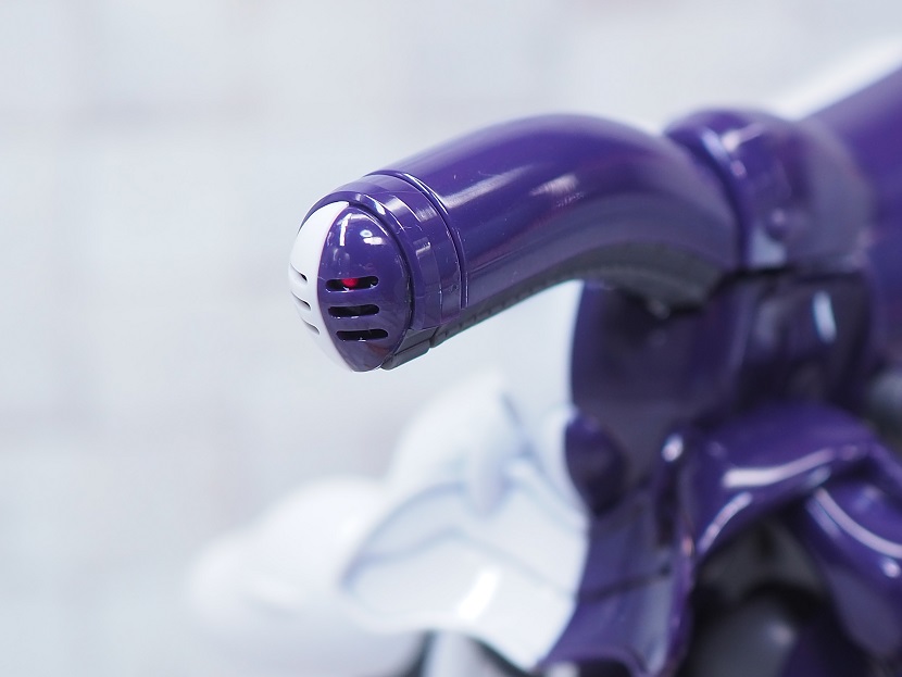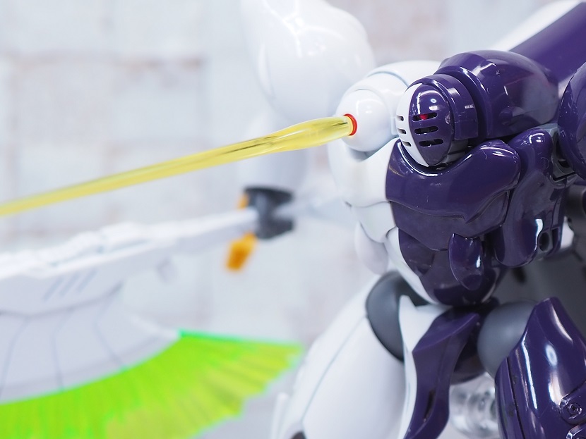 頭部左側面に搭載されたメガ粒子砲の砲口に差し込むことでビームの発射を再現。