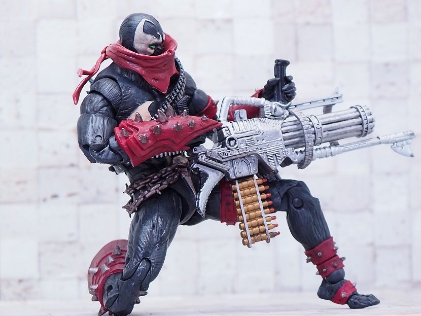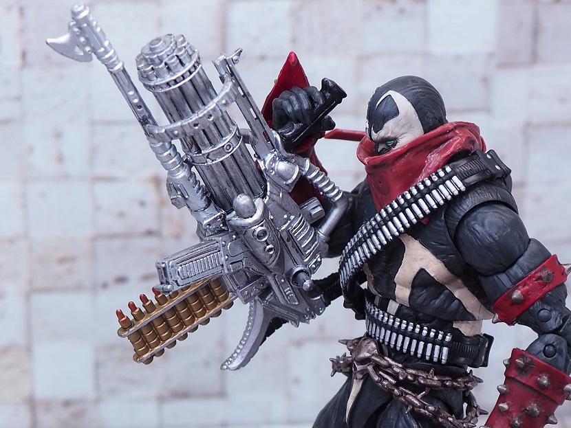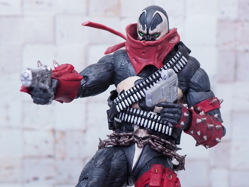 スポーンⅣに付属するスカーフと武器、さらにSPAWN THE MOVIEのガンベルトを巻きつけてみました。