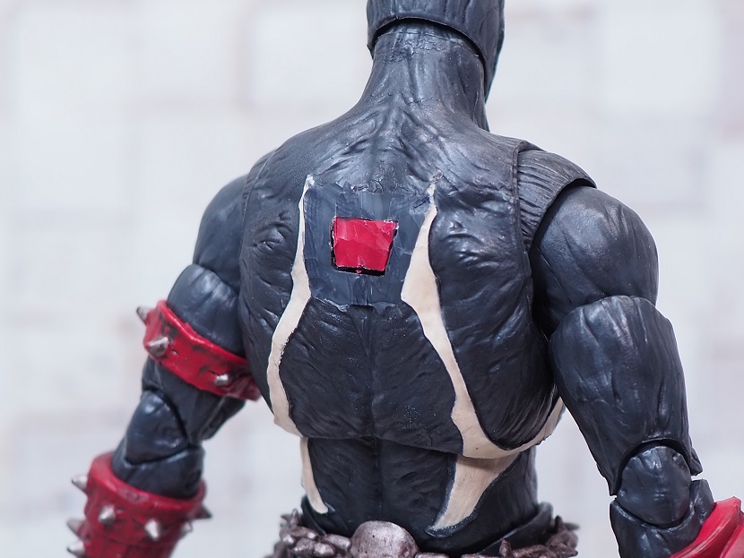 背中も出っ張りを削るだけではなく、穴をパテで埋めてから塗装する必要がありますね。