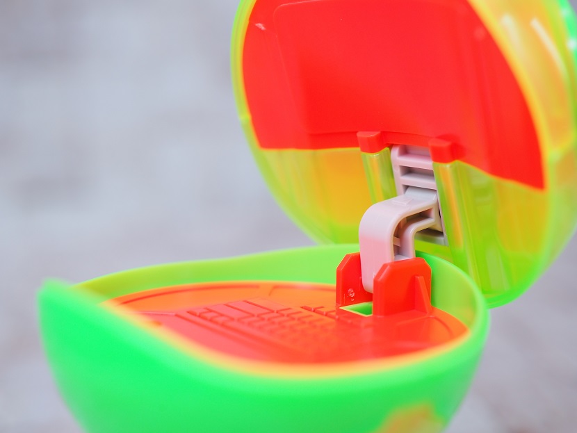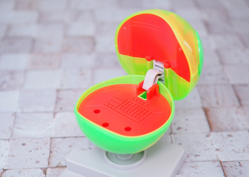 下半分の外装と上蓋は蛍光グリーンのような明るめな成型色。