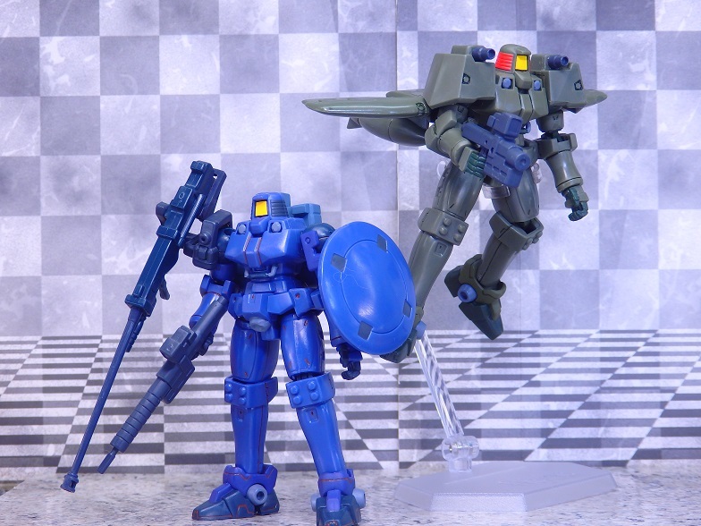 ちなみにこちらのモスグリーンカラーは地球圏統一連合・マリーメイア軍・OZトレーズ派の陸戦機。