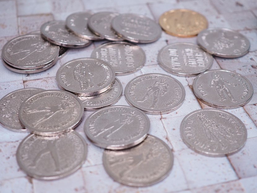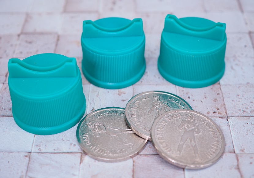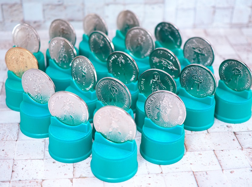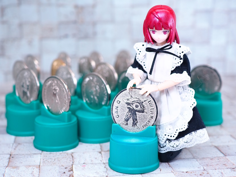 ボトルキャップが台座になっておりメダルを挟み込んでディスプレイしている感じです。