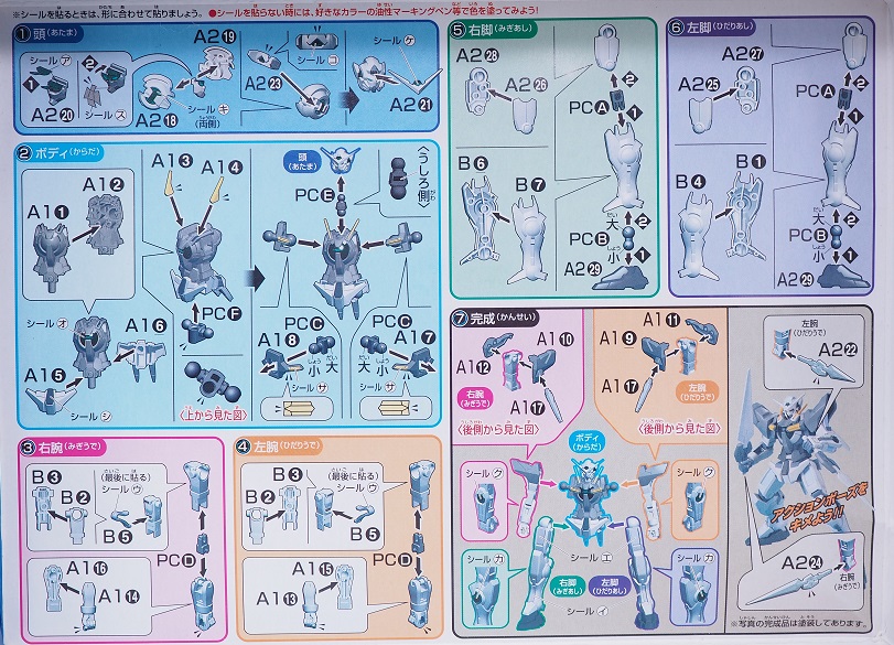 頭部横のアンテナは別パーツ構成、胴体のレンズ部に当たる部分はシールでの再現です。