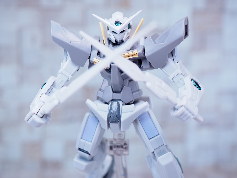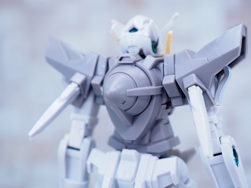 ホワイトとグレーの淡い配色はガンダムロールアウトカラーやSEED系のディアクティブモードを彷彿とさせます。