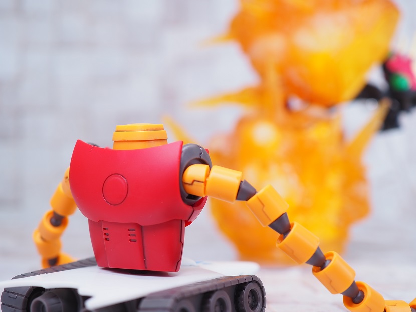 キャタピラと下半身の間にパーツを介しているため激しい動きをつける事が可能。