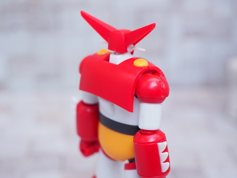 頭部横のアンテナやマント止めのイエローパーツなど細かなパーツ分け。