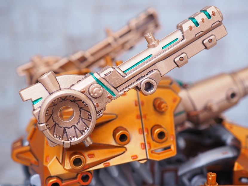 内部の骨格は主にシルバー、外装はゴールド+クリアオレンジで塗装。