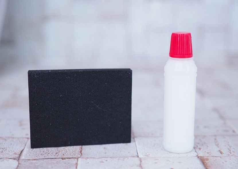 粉が落ちて汚れるので新聞紙を敷いた上でパウダーをこすりつけてください。