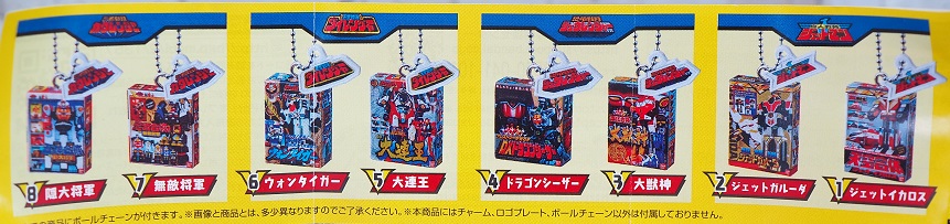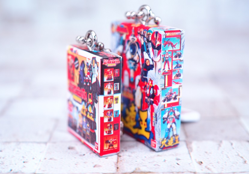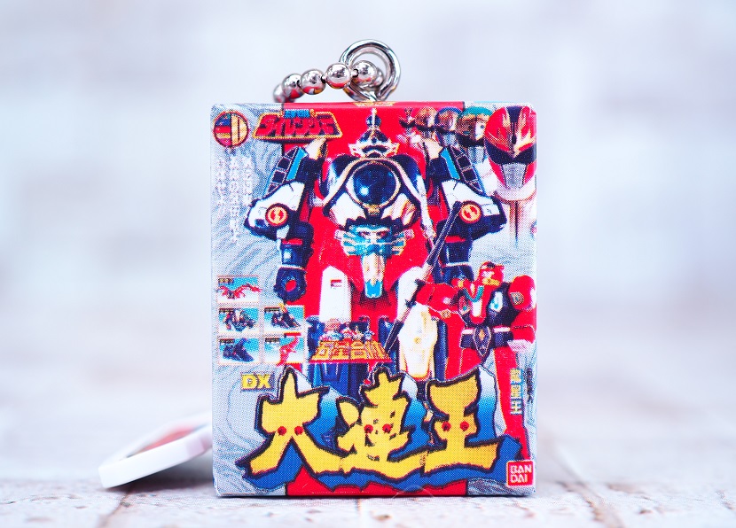 こちらはバンダイより発売されたカプセルトイでスーパー戦隊ロボのパッケージがモチーフのキーホルダー。