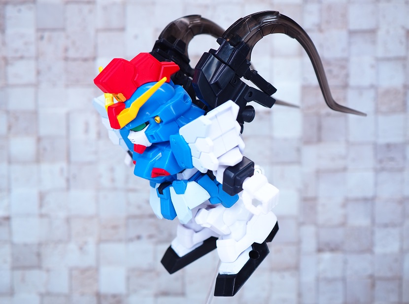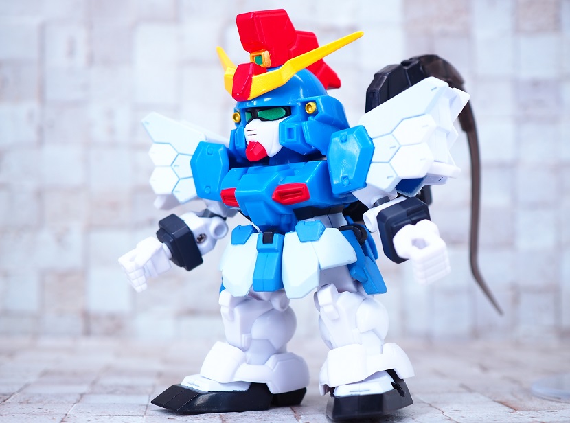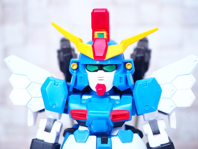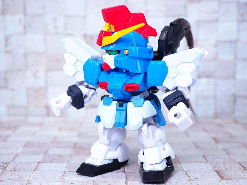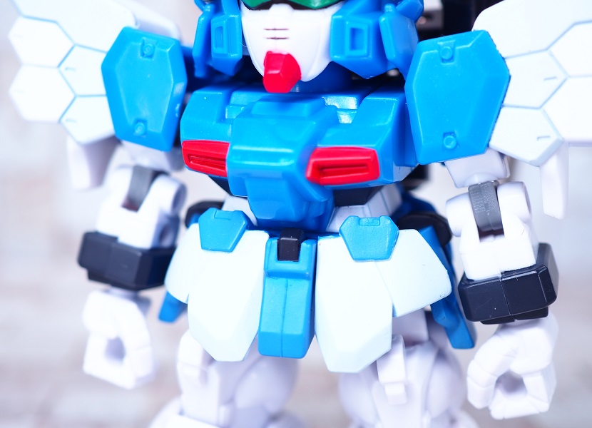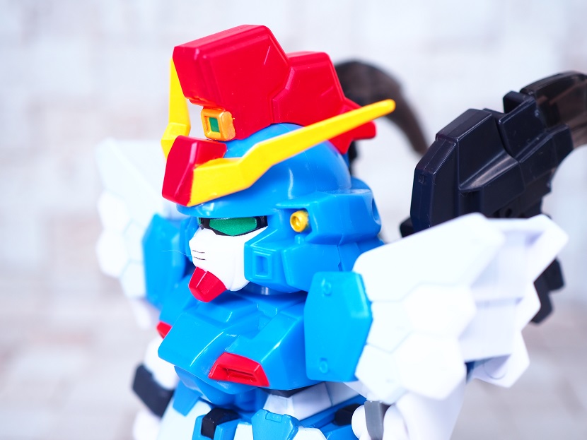 SDガンダムシリーズの中でも等身が高いため、瞳がなくリアル寄りのデザイン。