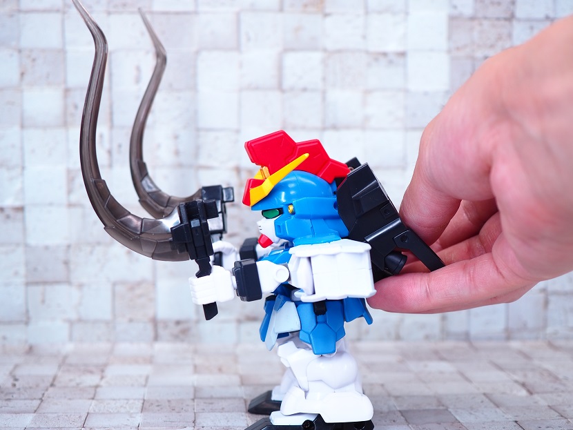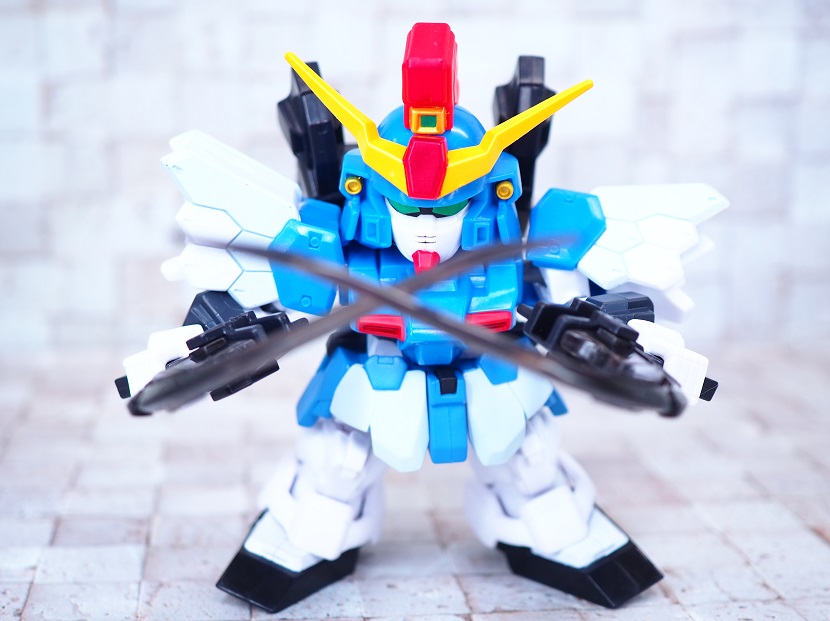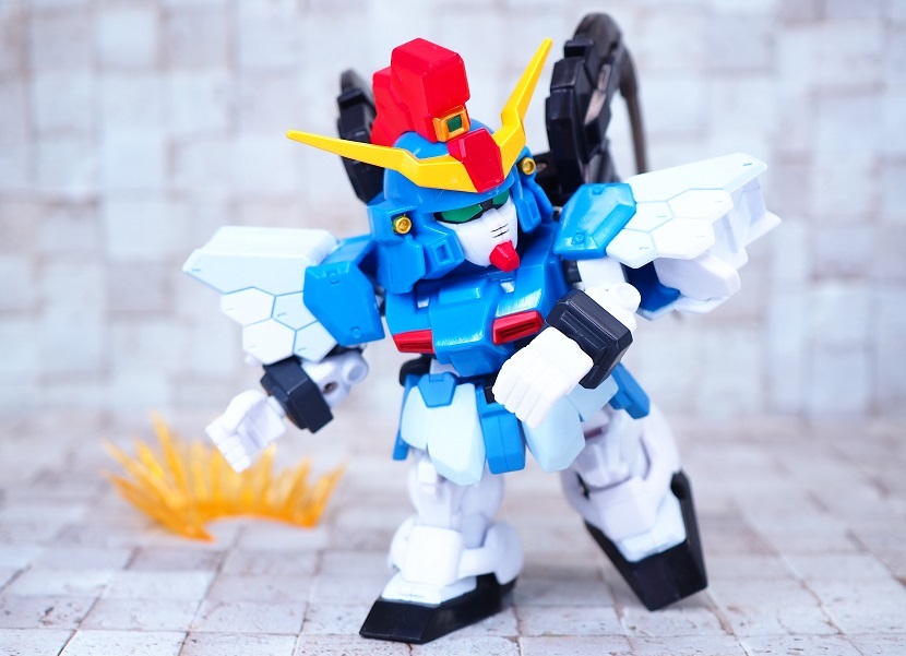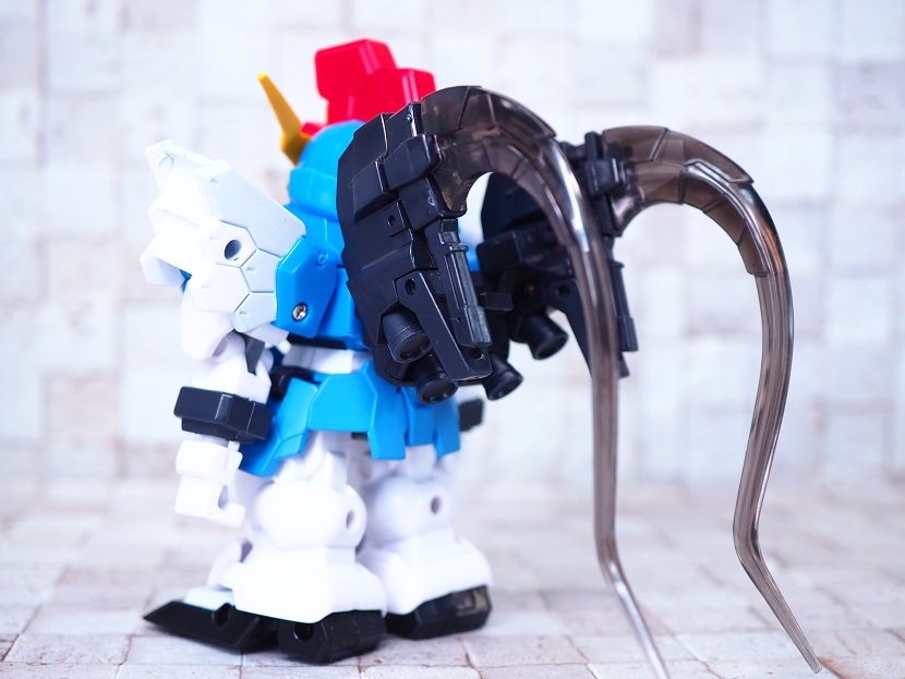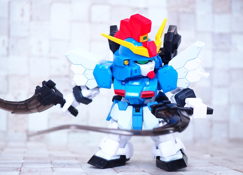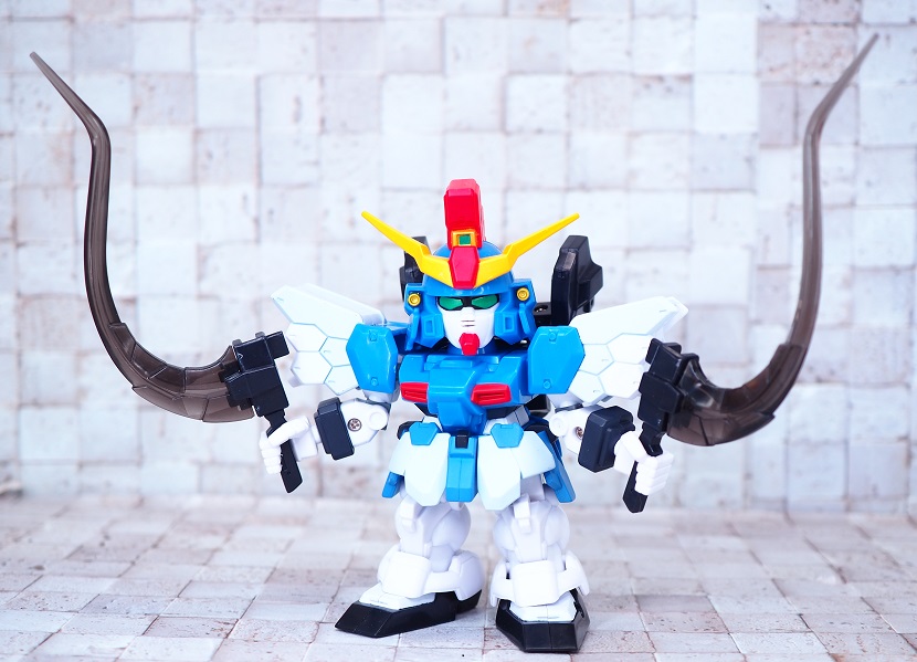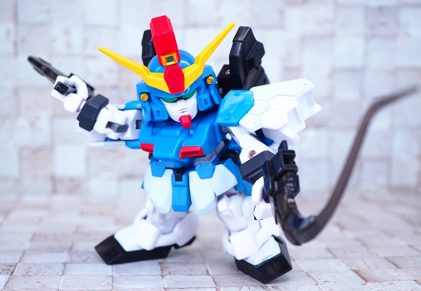 SDガンダムシリーズの中でも等身が高いため、瞳がなくリアル寄りのデザイン。