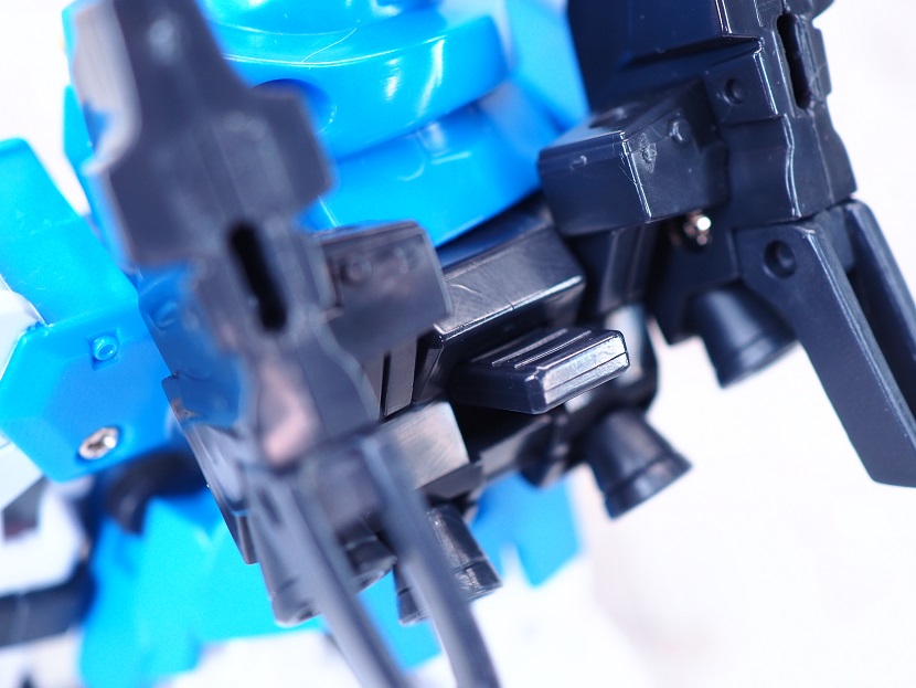 腕部は肩のジョイントで前後に可動、肩アーマー横のパーツが上下するので少し横方向にも動かせます。