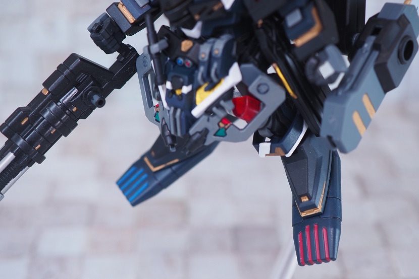 下部のガトリングガンは2013年冬の「HG カスタマイズキャンペーン」で配布されたキットを使用。