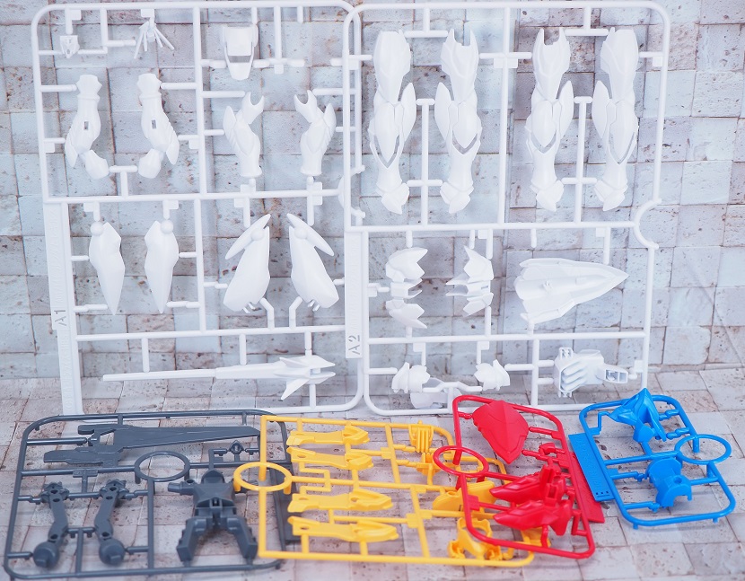 いつものモナカ割り構造ではありますが、今回は脚部内部にイエローのパーツを組み込む為、パーツ数が多くなっています。