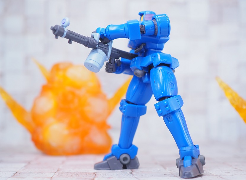 可動範囲が狭いながらも、マシンガンを構えるポージングは再現可能です。