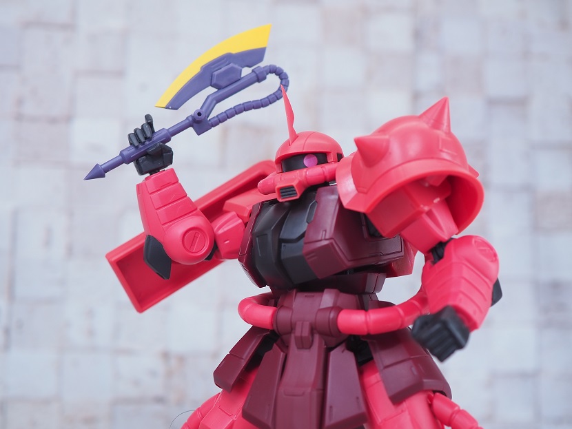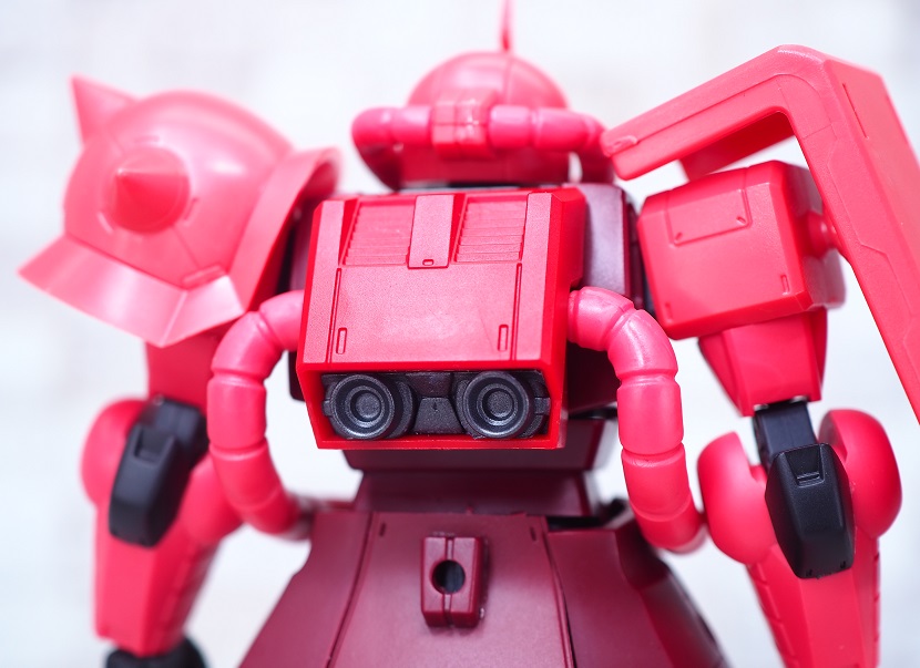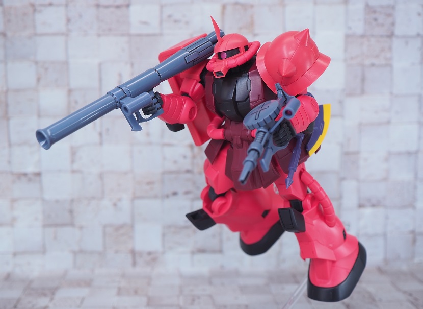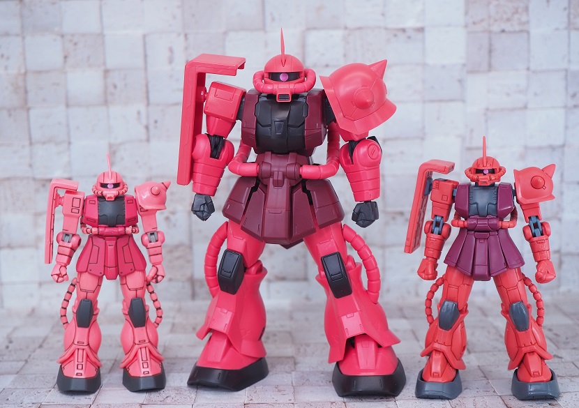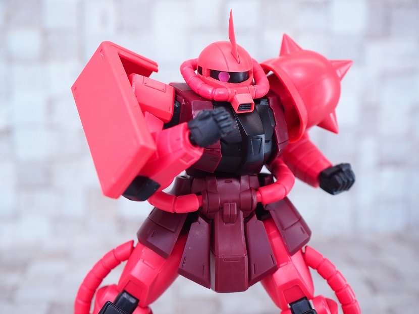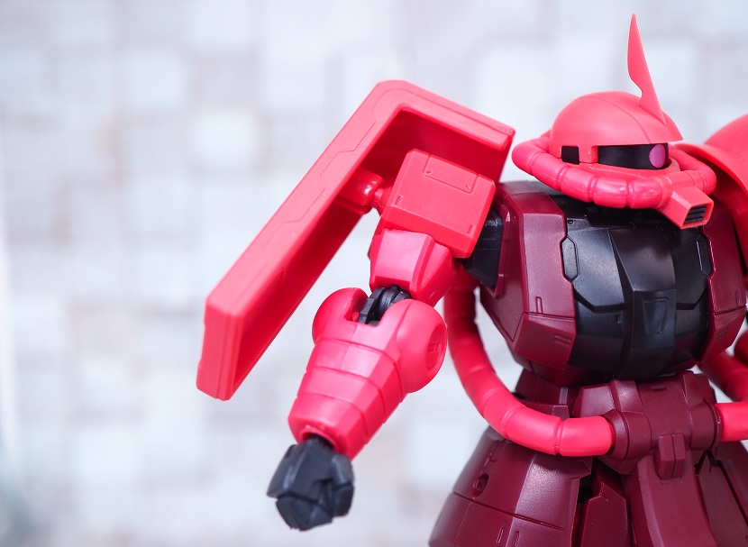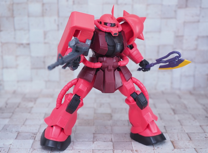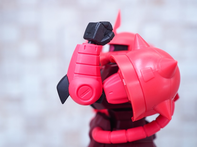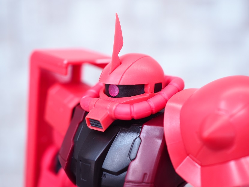 シャア専用ザクは実際に手に持ったときの大きさやずっしりとしたPVCの重さを楽しんでほしいですね。