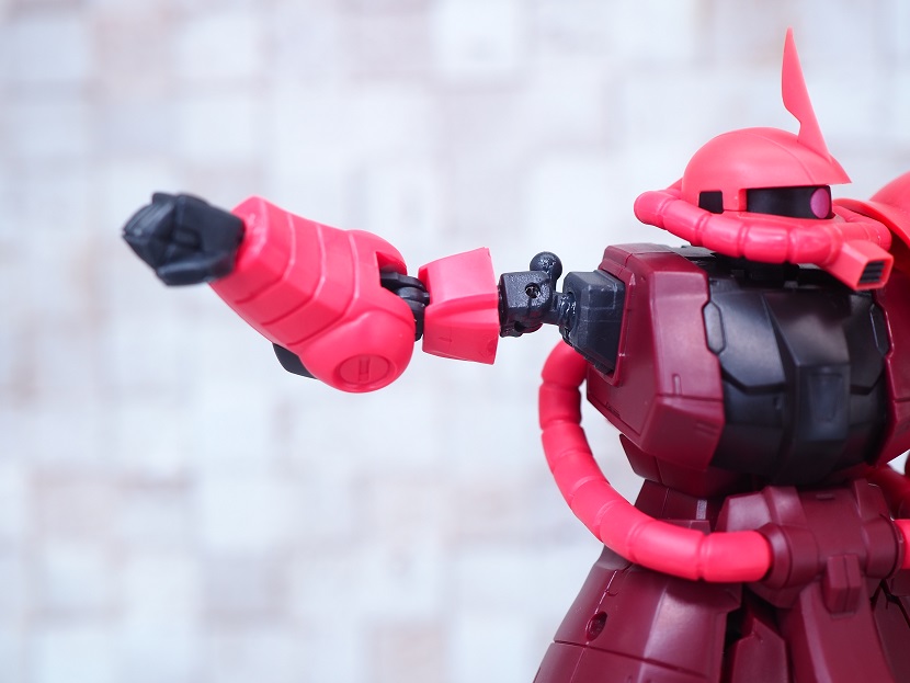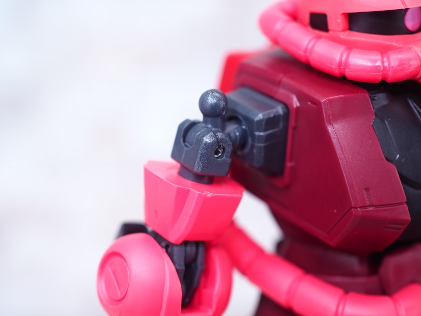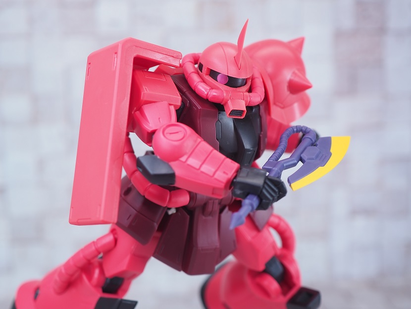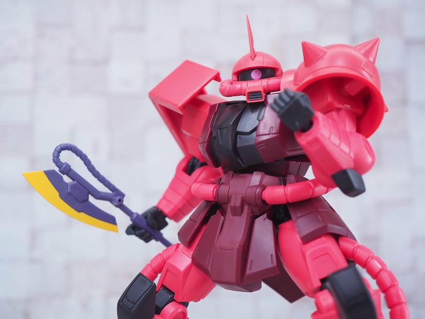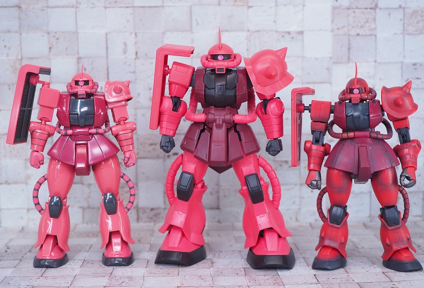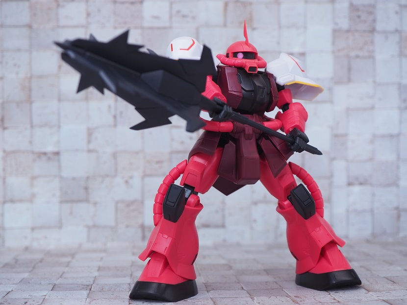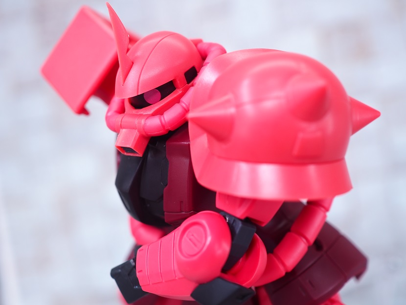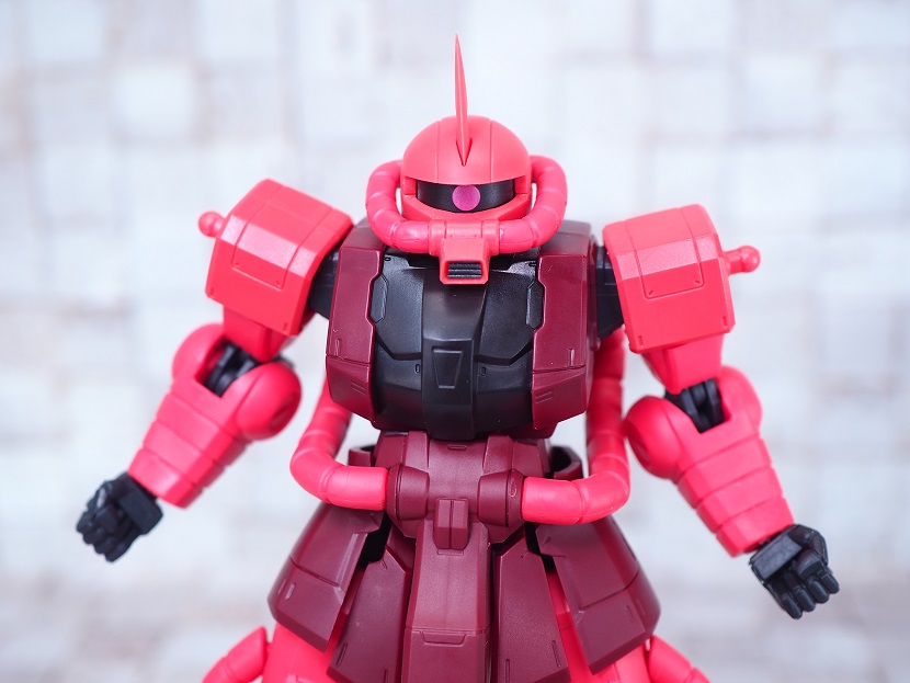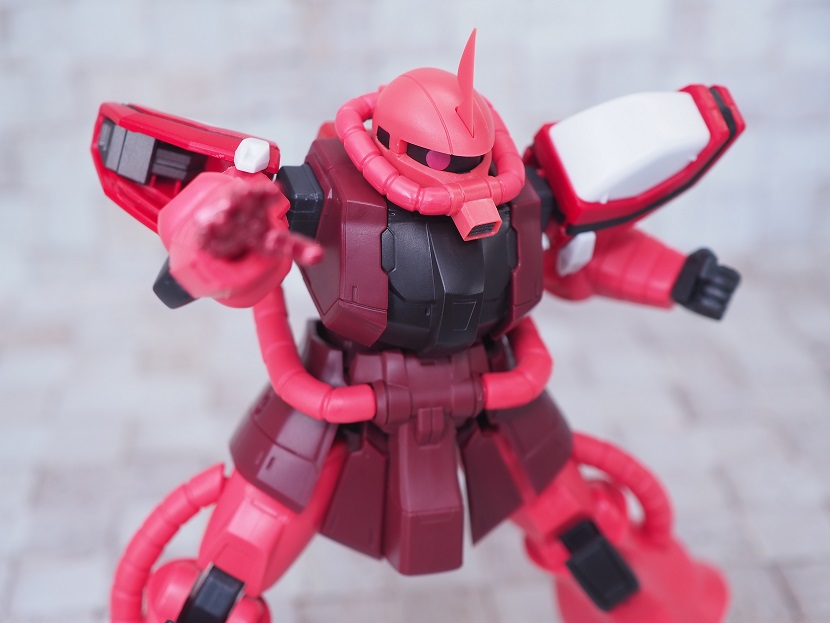 シャア専用ザクは実際に手に持ったときの大きさやずっしりとしたPVCの重さを楽しんでほしいですね。