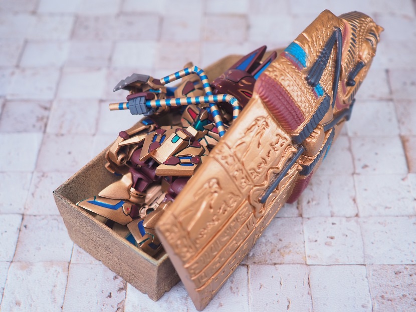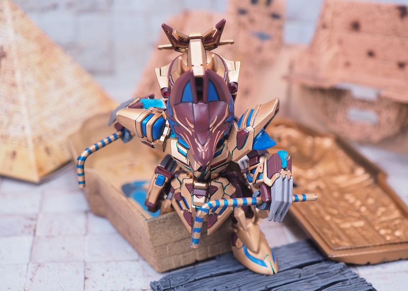 SDガンダムワールド ヒーローズも過去の作品ネタが散りばめられていますし、数少ないエジプト系ガンダムのお遊びネタということで。
