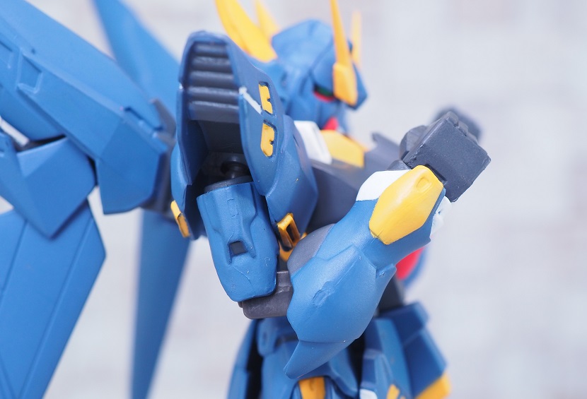 腕の付け根はボールジョイントになっていますが、肩アーマーは胴体側に軸接続なのであまり動かすことが出来ません。
