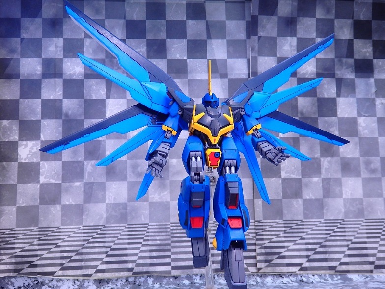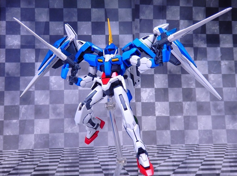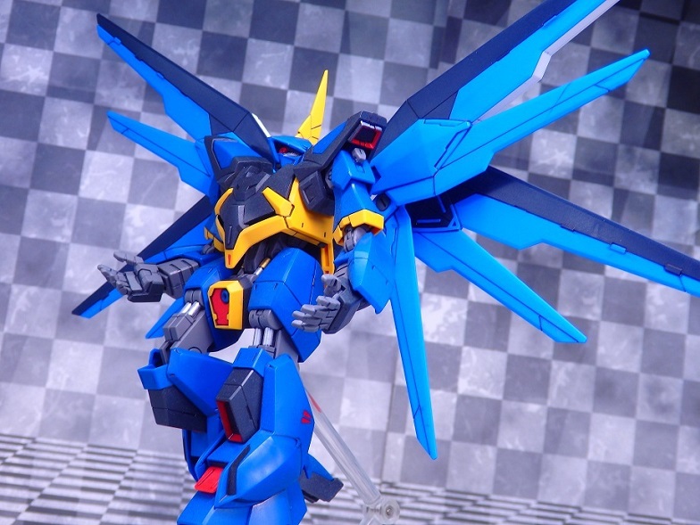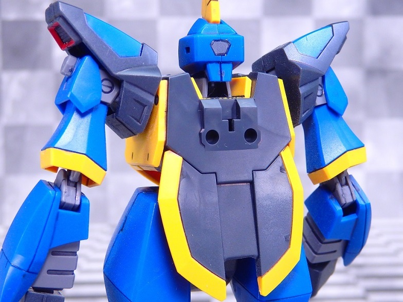 背中にはビルドファイターズ系と同じ接続穴が空いているので、他のガンプラのバックパックを無改造で取付け可能。