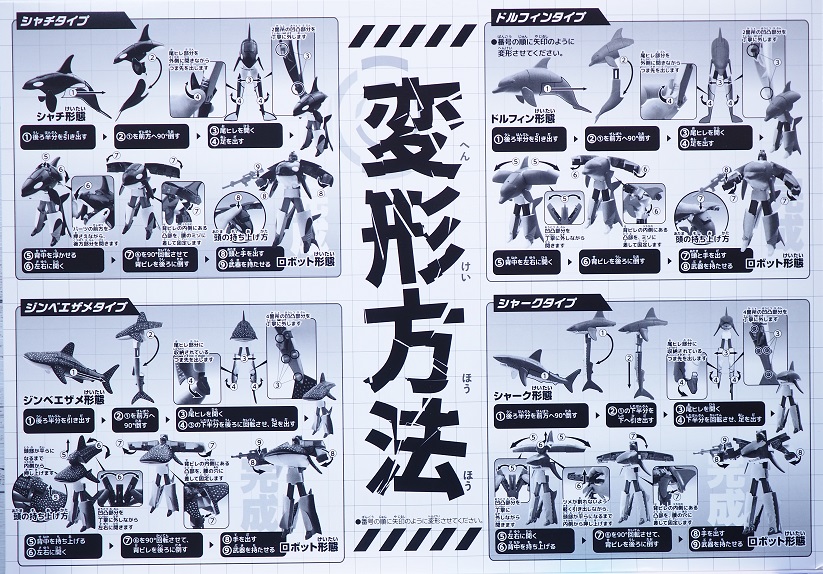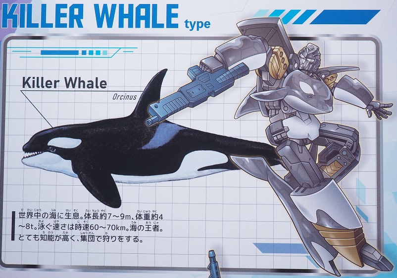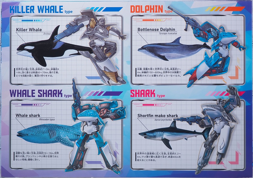 胸にサメの頭部があり見た目はドルフィン、シャチに似ていますが変形機構が異なります。
