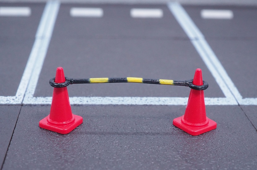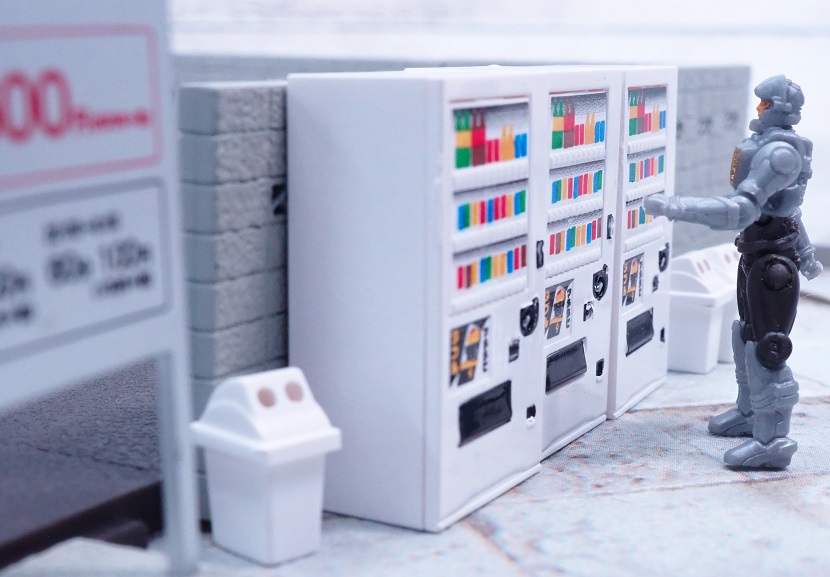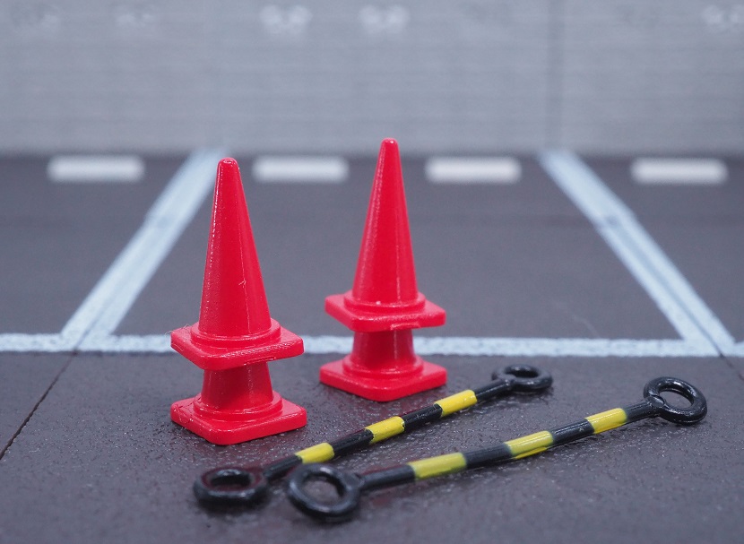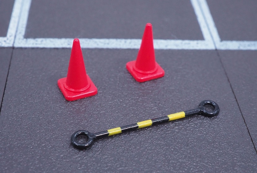 販売機とゴミ箱の代わりに、三角コーン×4 と コーンバー×2 が付属しております。