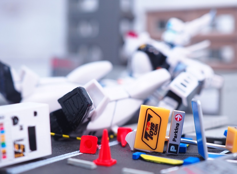 こちらも地面パーツに差し込むことでディスプレイ。文字等はプリントになっています。