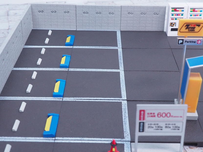 ジオコレ64は本格的なジオラマ用で敷居が高いので、つまむ程度ならこちらの「駐車場コレクション」の方がちょうどいい感じですね。