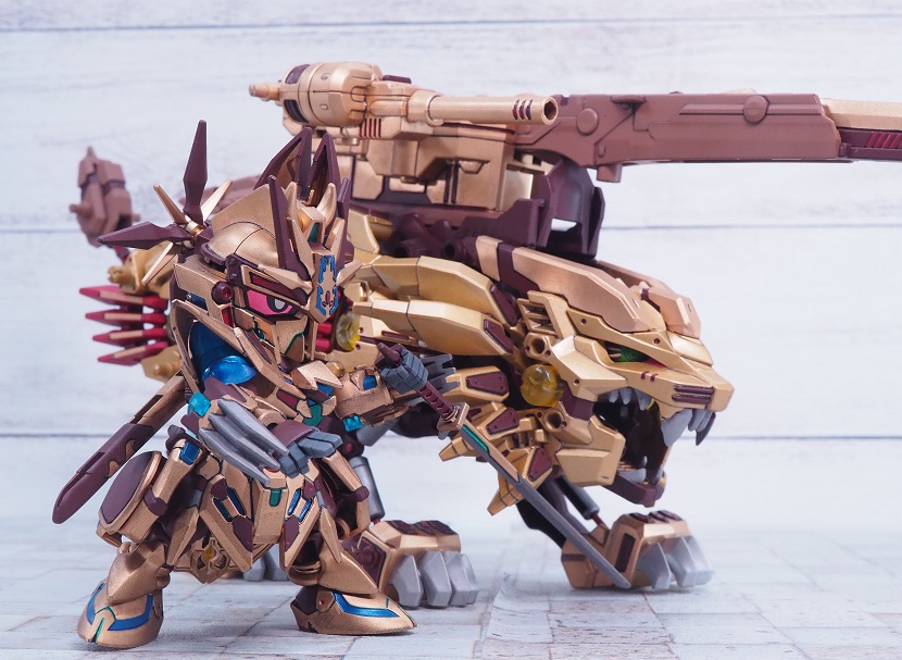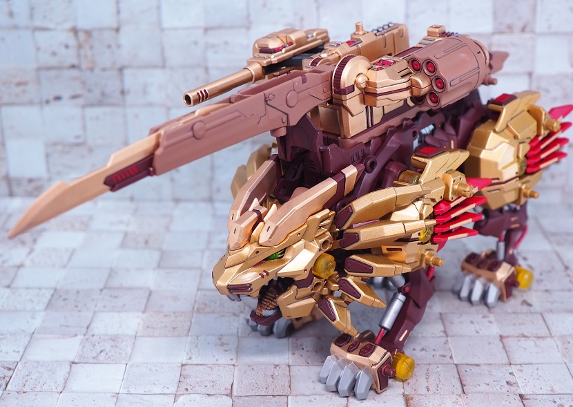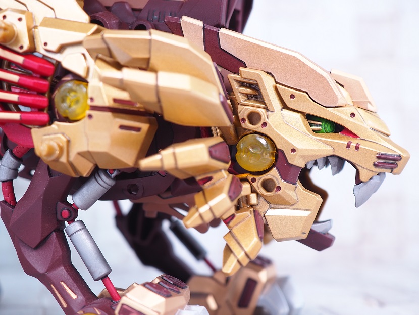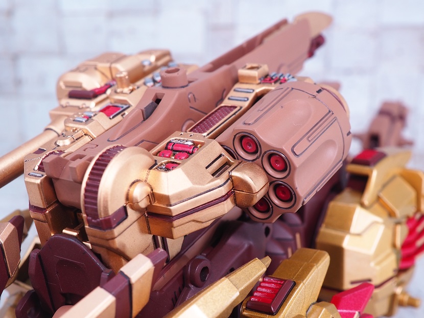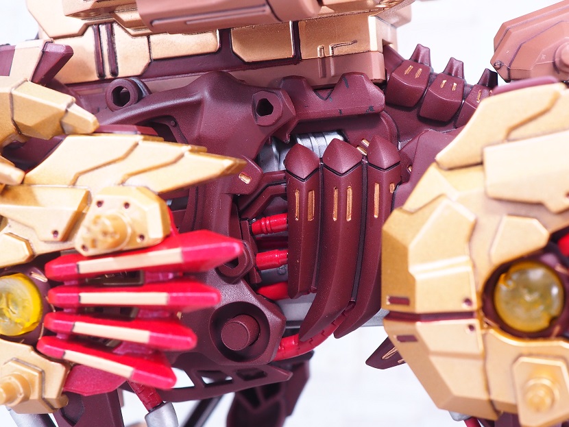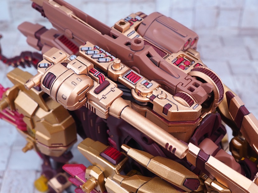 ライジングライガーのゴールド塗装パーツを残しつつ、各部にブライウン、レッドを加えています。