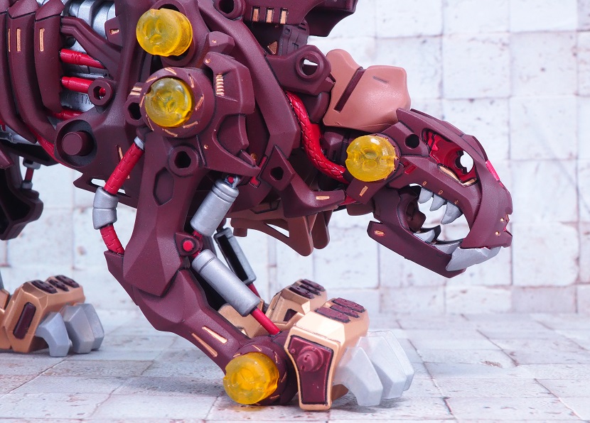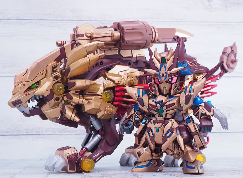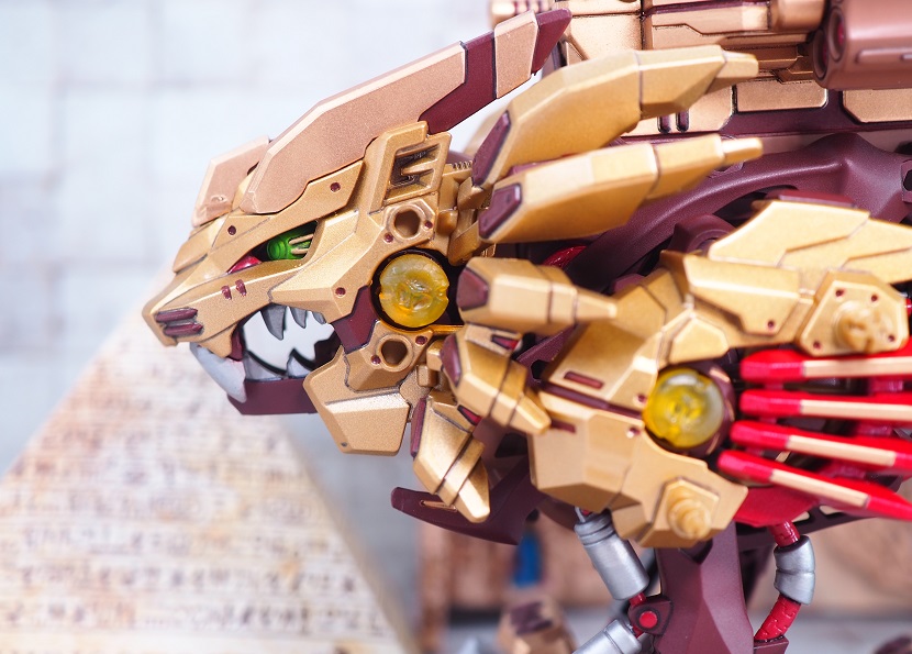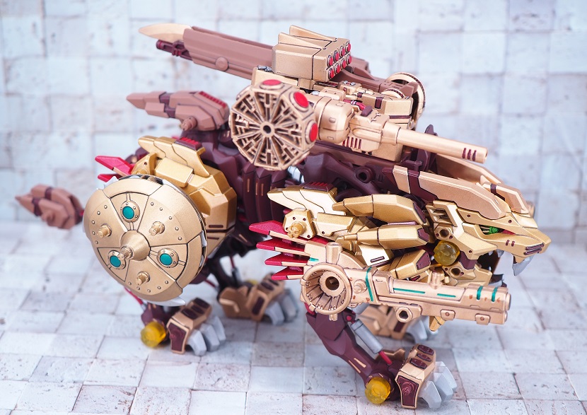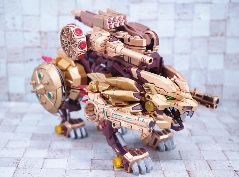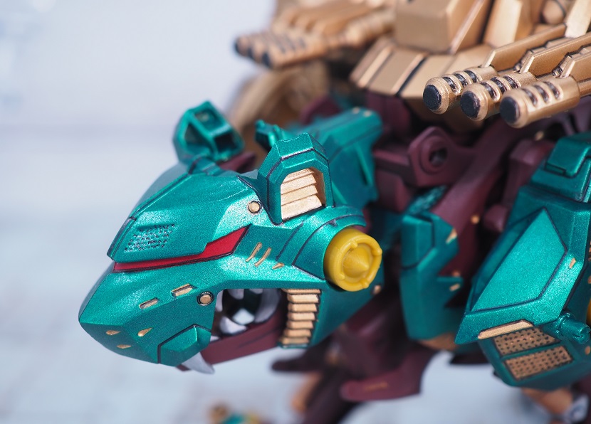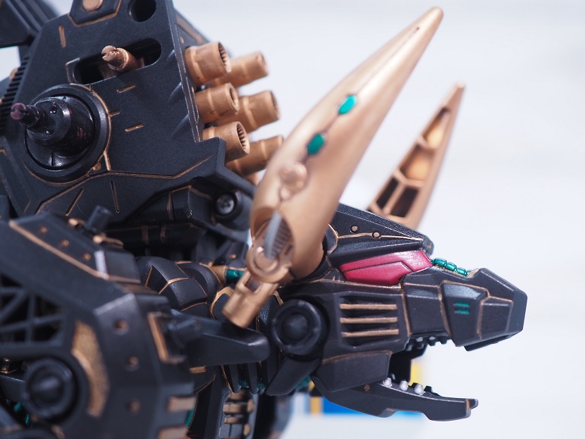 ライジングライガーのゴールド塗装パーツを残しつつ、各部にブライウン、レッドを加えています。