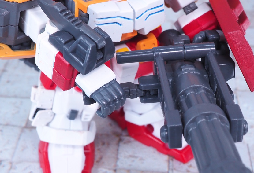 かなり窮屈になってしまいますが、ガトリングを両手で構えるポージングが可能です。