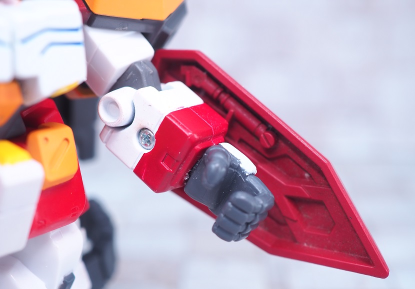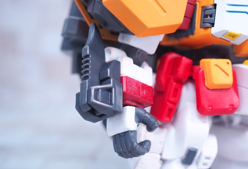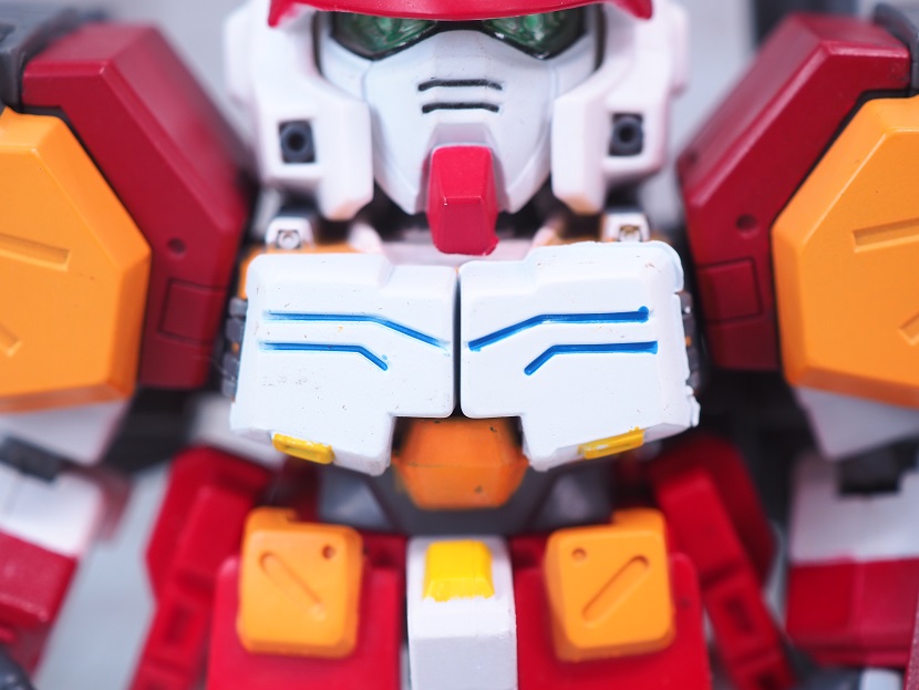 胸部はグレーの成型色でホワイトやダクトのイエロー、メインカラーのオレンジは塗装による色分け。