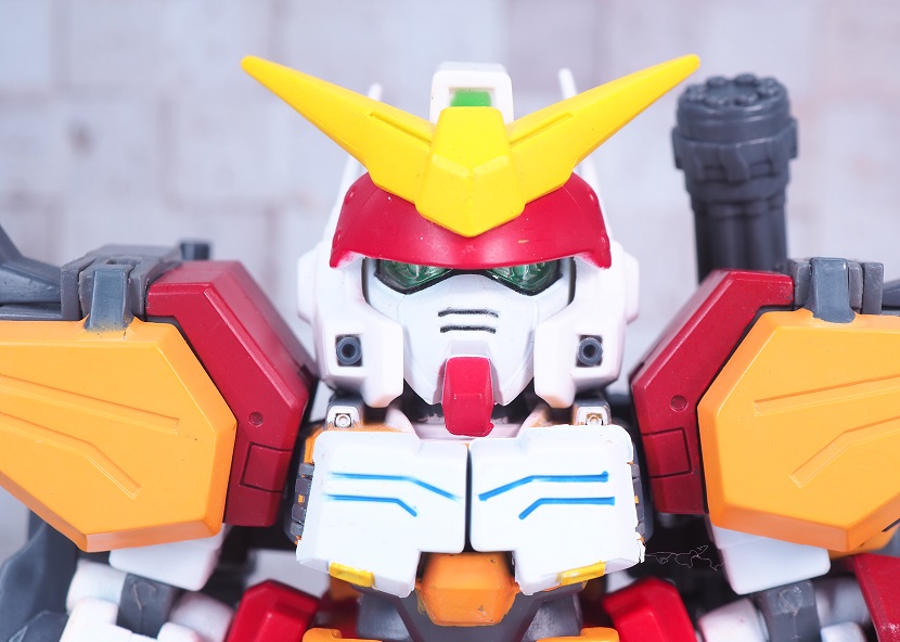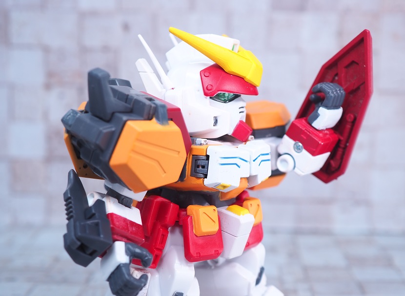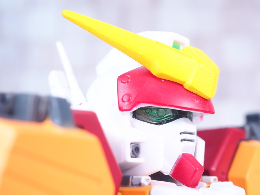 SDガンダムシリーズの中でも等身が高いため、瞳がなくリアル寄りのデザイン。