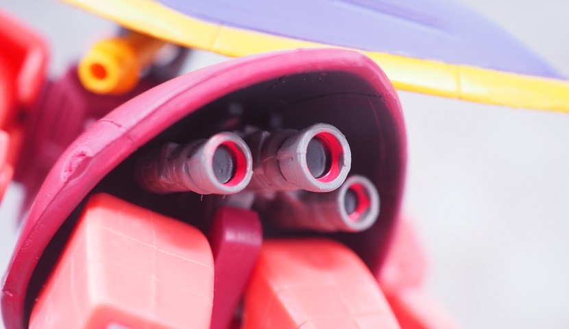 ボディはメインカラーの小豆色は成型色でコクピットハッチ部分のみピンクで彩色されています。