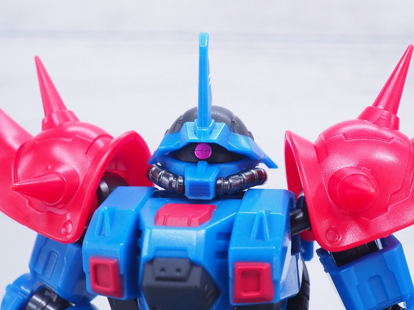 ジオン系ではおなじみですが、頭頂部のパーツを外すことで左右にモノアイを動かせます。