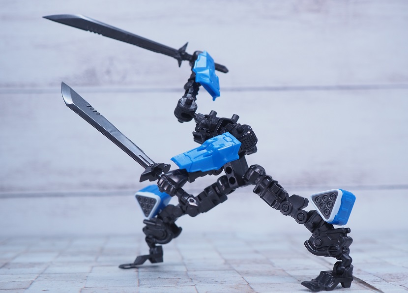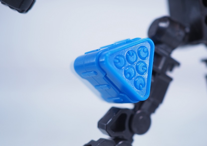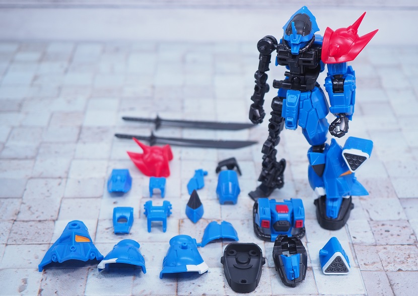 ボディのブルーと腰のパイプは成型色による再現。