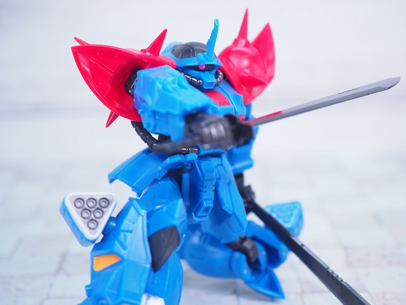 頭部のブレードアンテナのアレンジが効いており、設定画よりも長くナイフのような形状に変更されています。