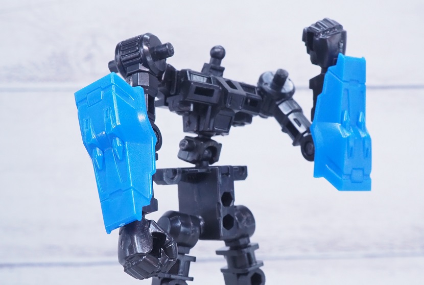 ボールジョイント受け部分の肉抜きを埋めたことで、肩部と股関節の強度、渋みが初期のフレームよりも強くなっています。