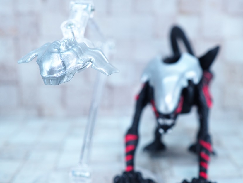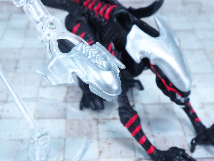 パンサーエイリアンはフードにクリアパーツが使用されておりましたが、こちらはシルバーの成型色になっています。